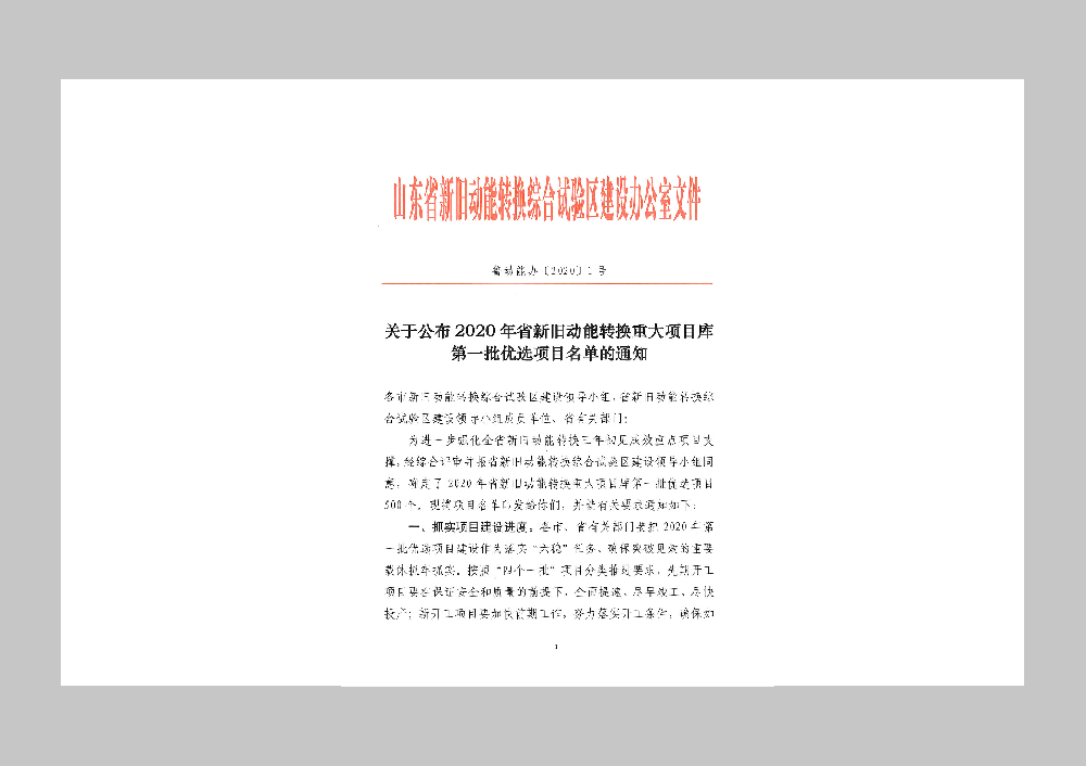 2020年省新旧动能转换重大项目库第一批优选项目名单